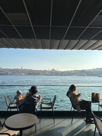 Karaköy’ün kendine has sokaklarında ilerlerken, Karaköy Şehir Hatları İskelesi’nin üst katına gizlenmiş bu sıcak mekânı bulduğunuzda adeta başka bir dünyaya adım atmış gibi hissediyorsunuz. Kafenin konumu öylesine güzel ki, oturduğunuz her köşeden İstanbul’un başka bir yüzüyle karşılaşıyorsunuz. Bu manzarada nereler yok ki ?